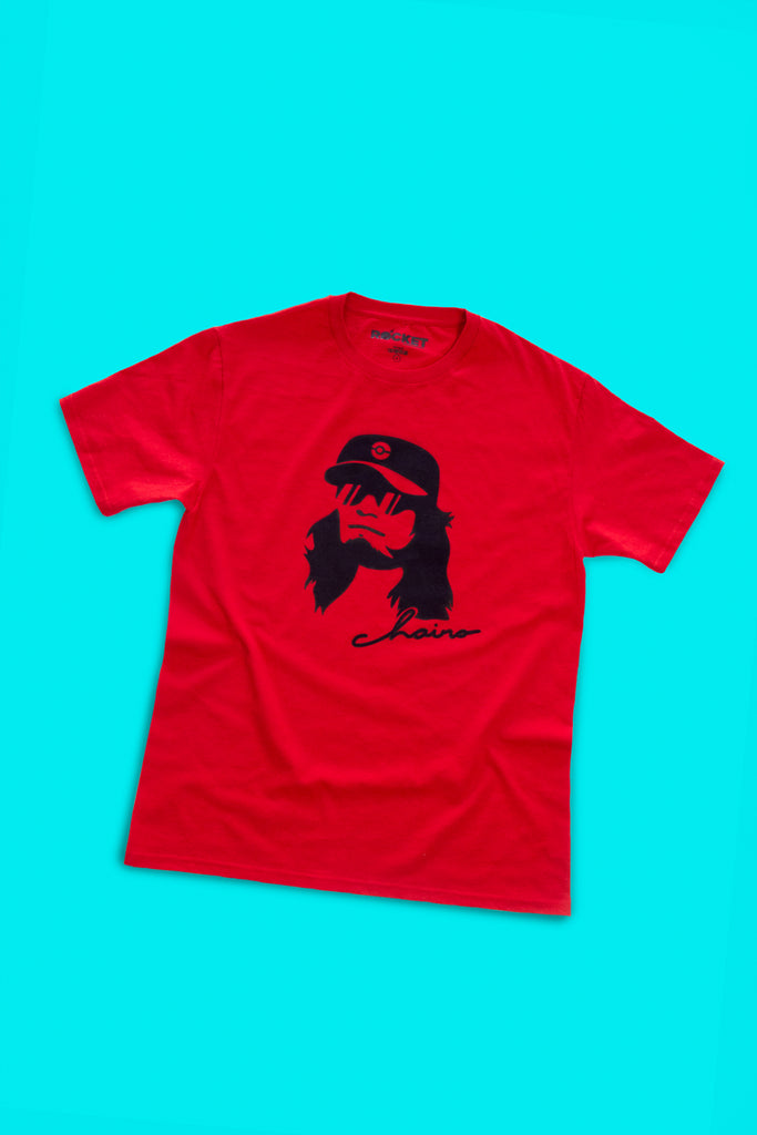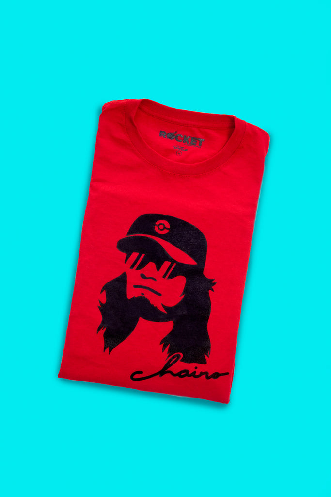 Playera Roja con ilustración del personaje Chairo de Kenny, en serigrafía a 1 tinta.
